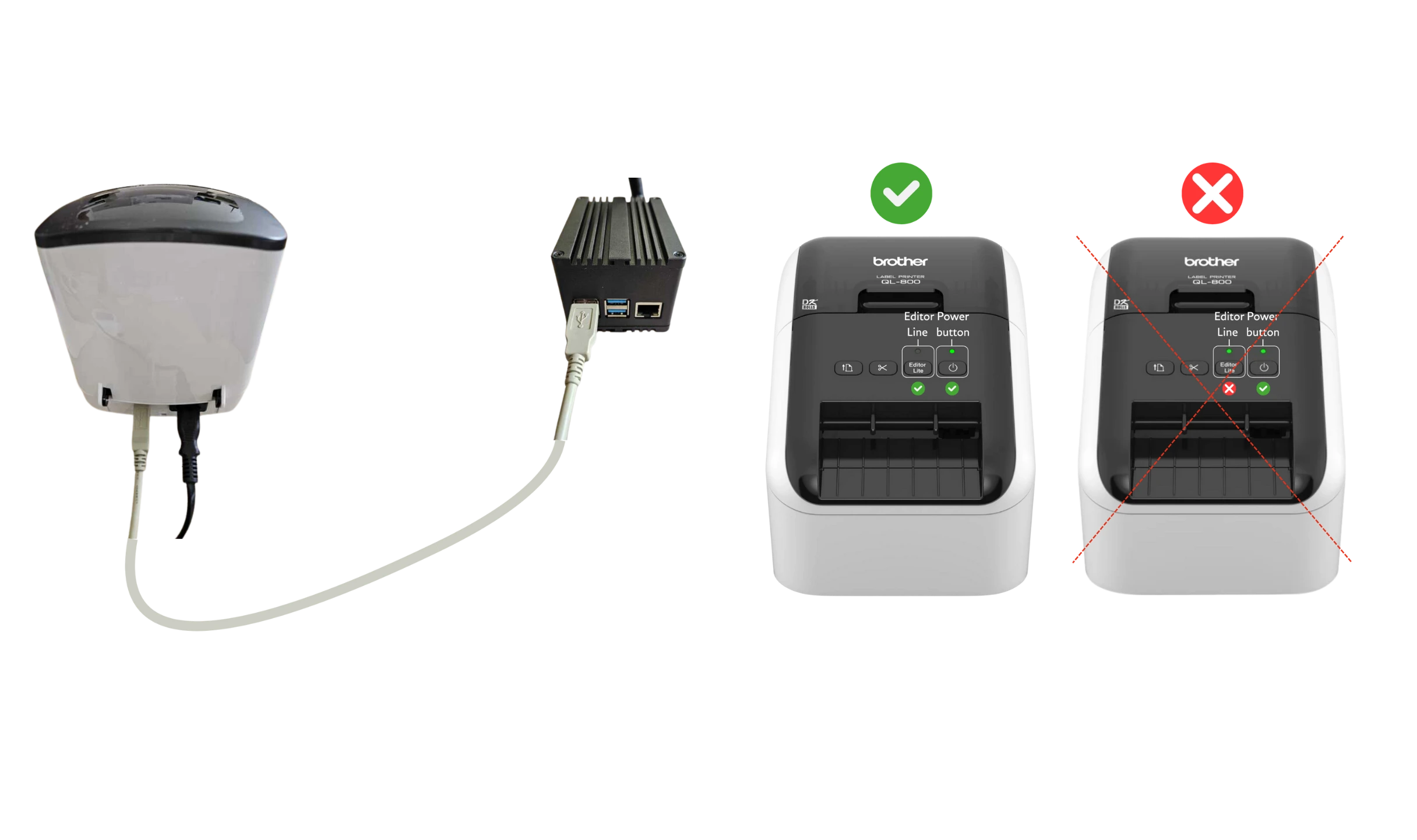 - Vérifiez que le point vert au dessus du Editor Lite soit éteint